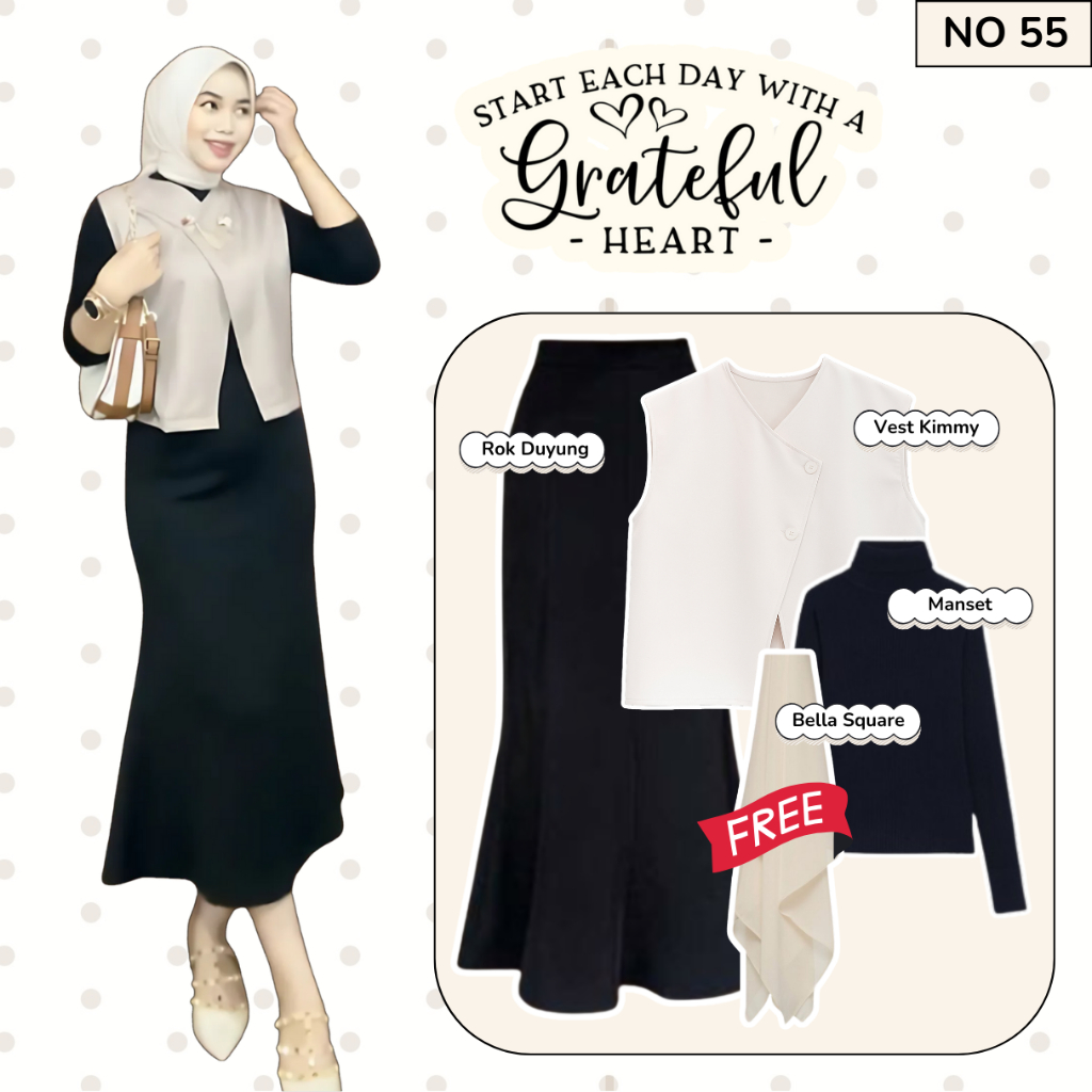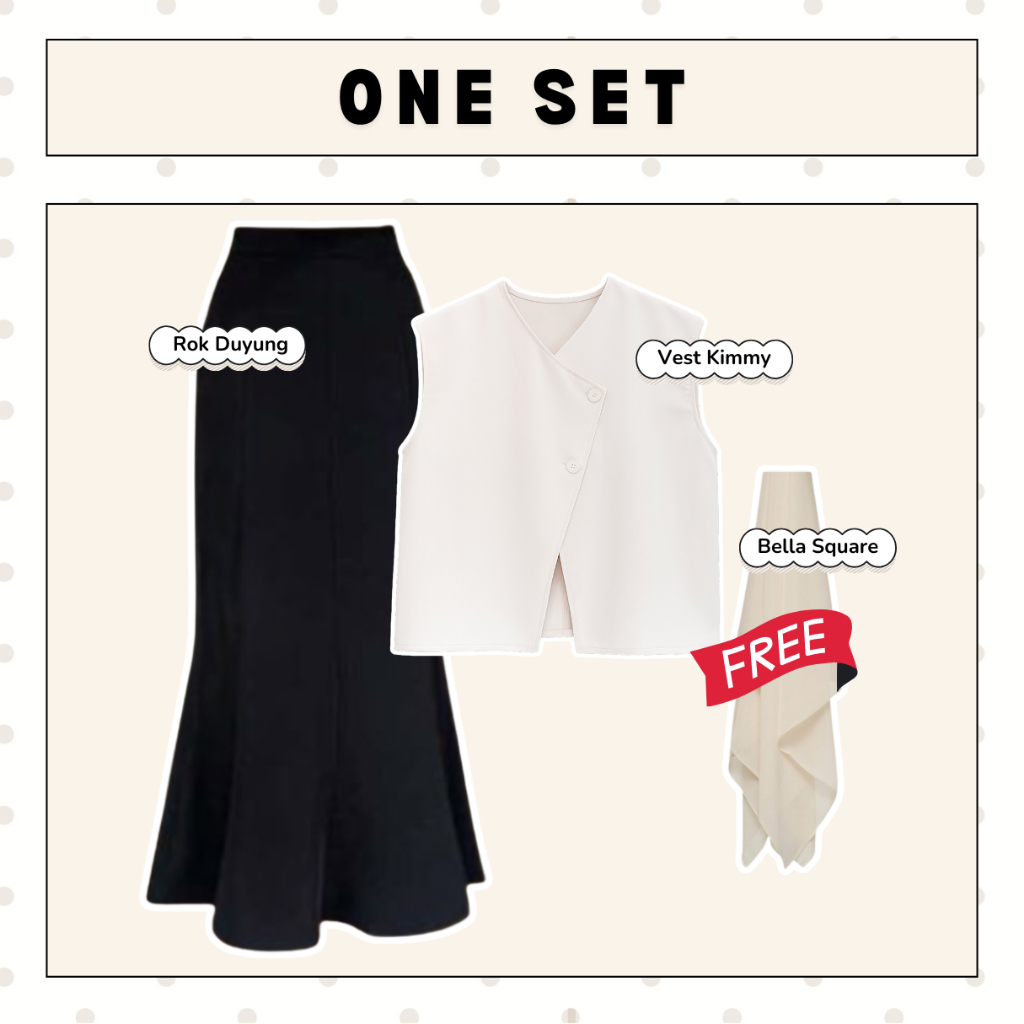 Setelan Wanita Rok Korean Style (Vest Kimmy, Manset Hitam, Rok Duyung) One Set Remaja Kekinian |NO55