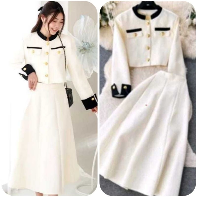 Setelan Baju Dan Rok Model Korea One Set Wanta Remaja Kekinian Full Kancing Termura