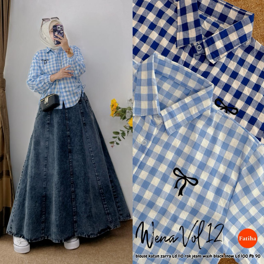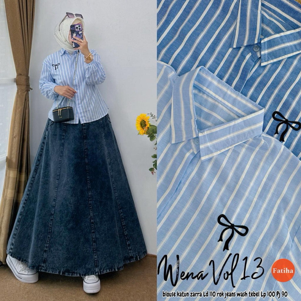setelan rok jeans plus kemeja viral wena set rok kekinian set kemeja salur