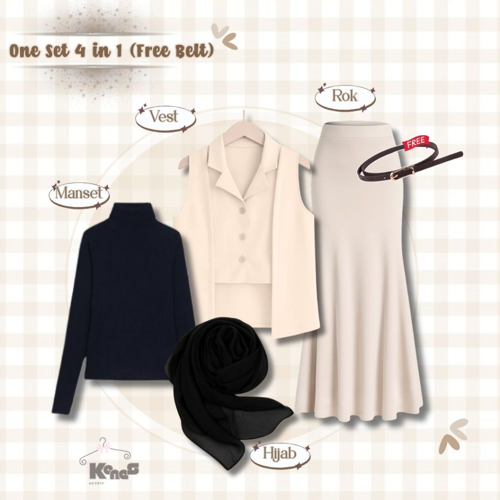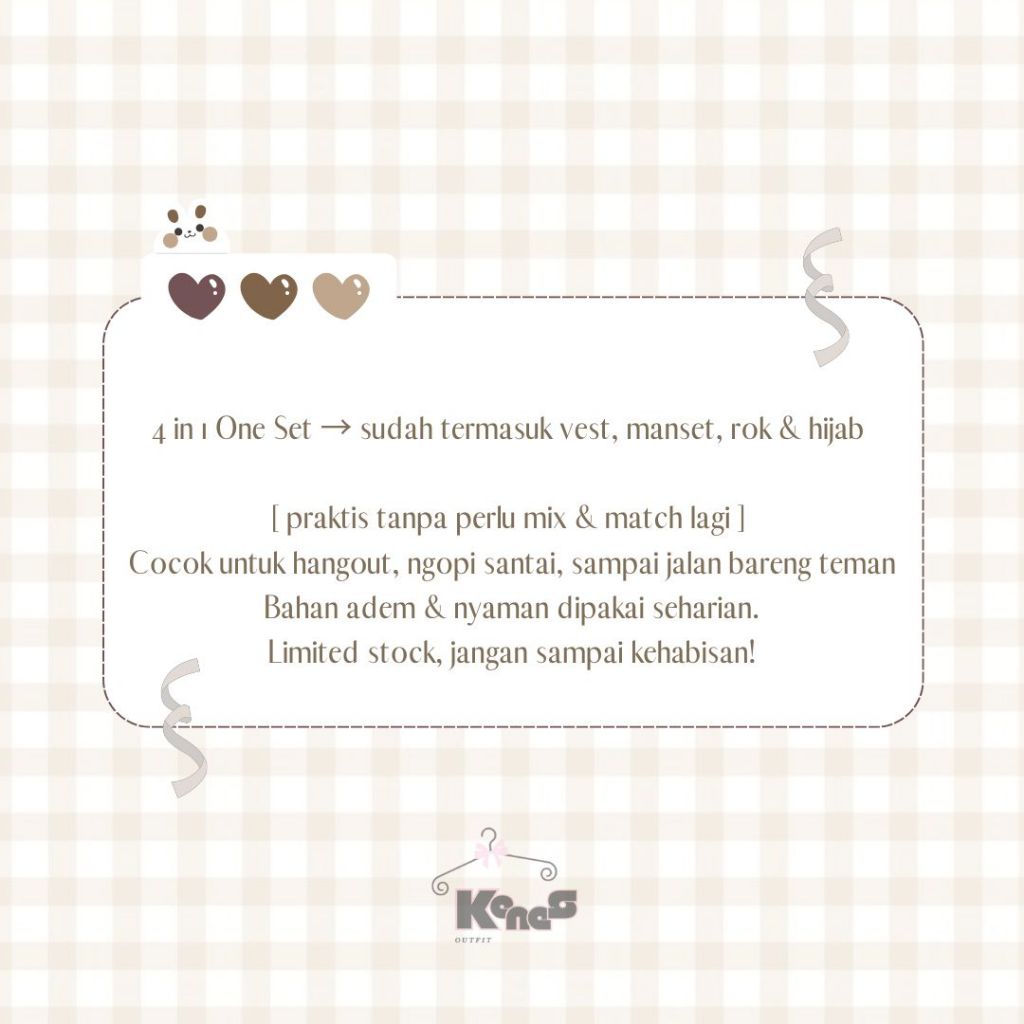 One Set Korean Look 4 In 1 (Vest Mecca, Rok Duyung, Manset, Hijab) OOTD Wanita Remaja Kekinian -KN55