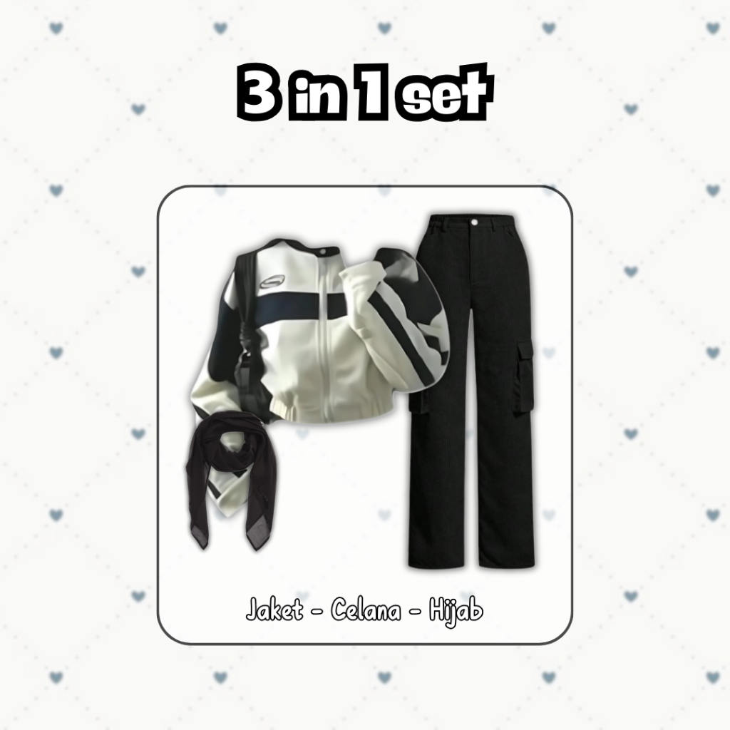 iconix outfit 3 in 1 set AH167 - ootd korean style one set wanita hijab kekinian setelan sweater crop outfit skena hango