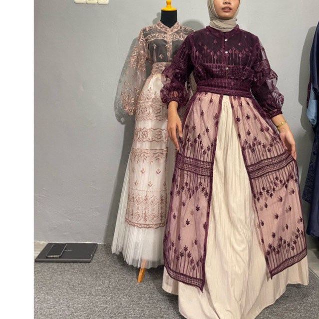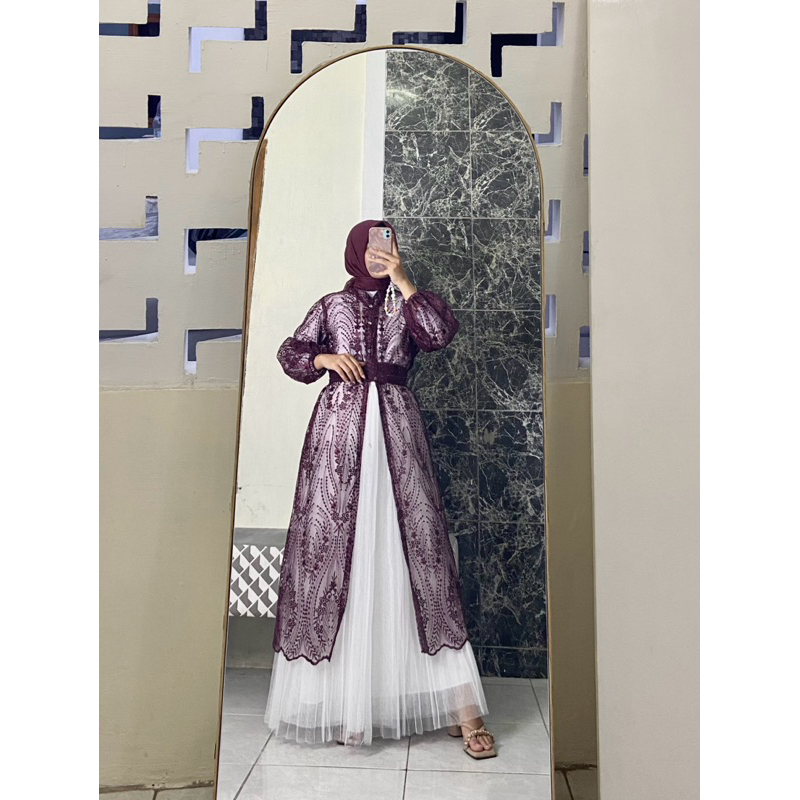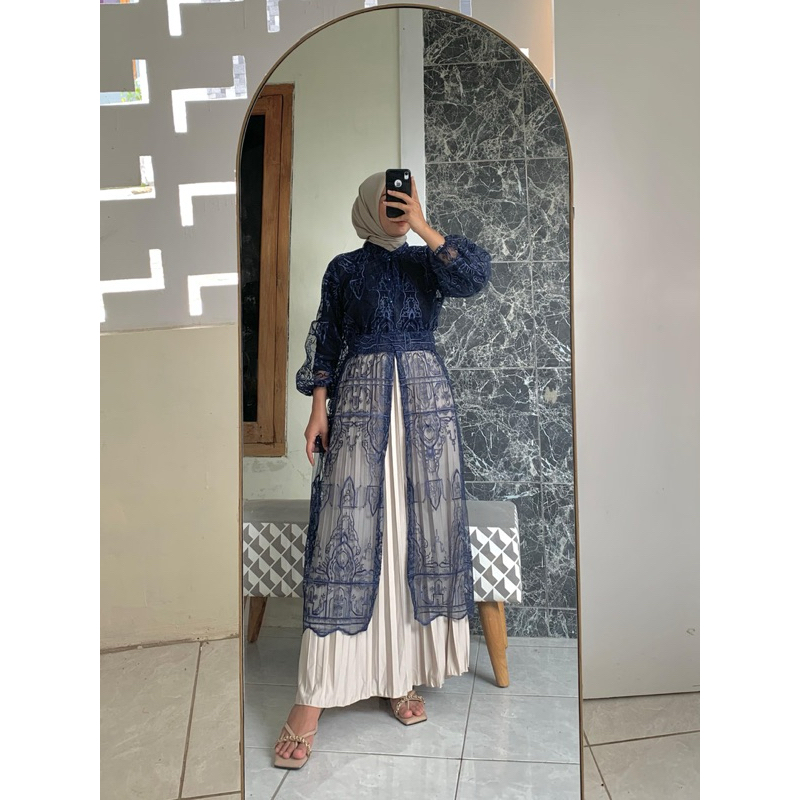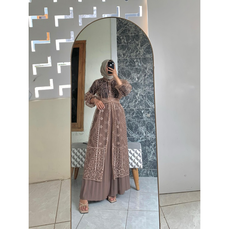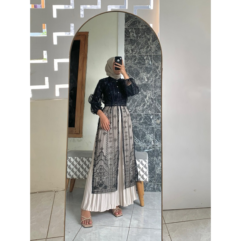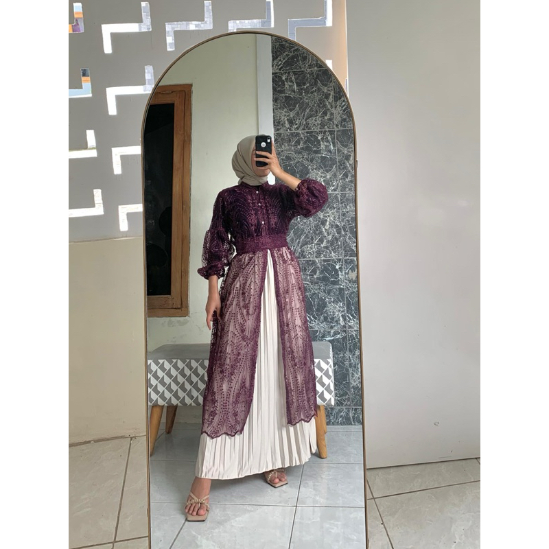 VAVA GALERI OUTER ARSHILA SET ROK PLISKET+FREE BELT/DRESS KONDANGAN OUTER KONDANGAN
