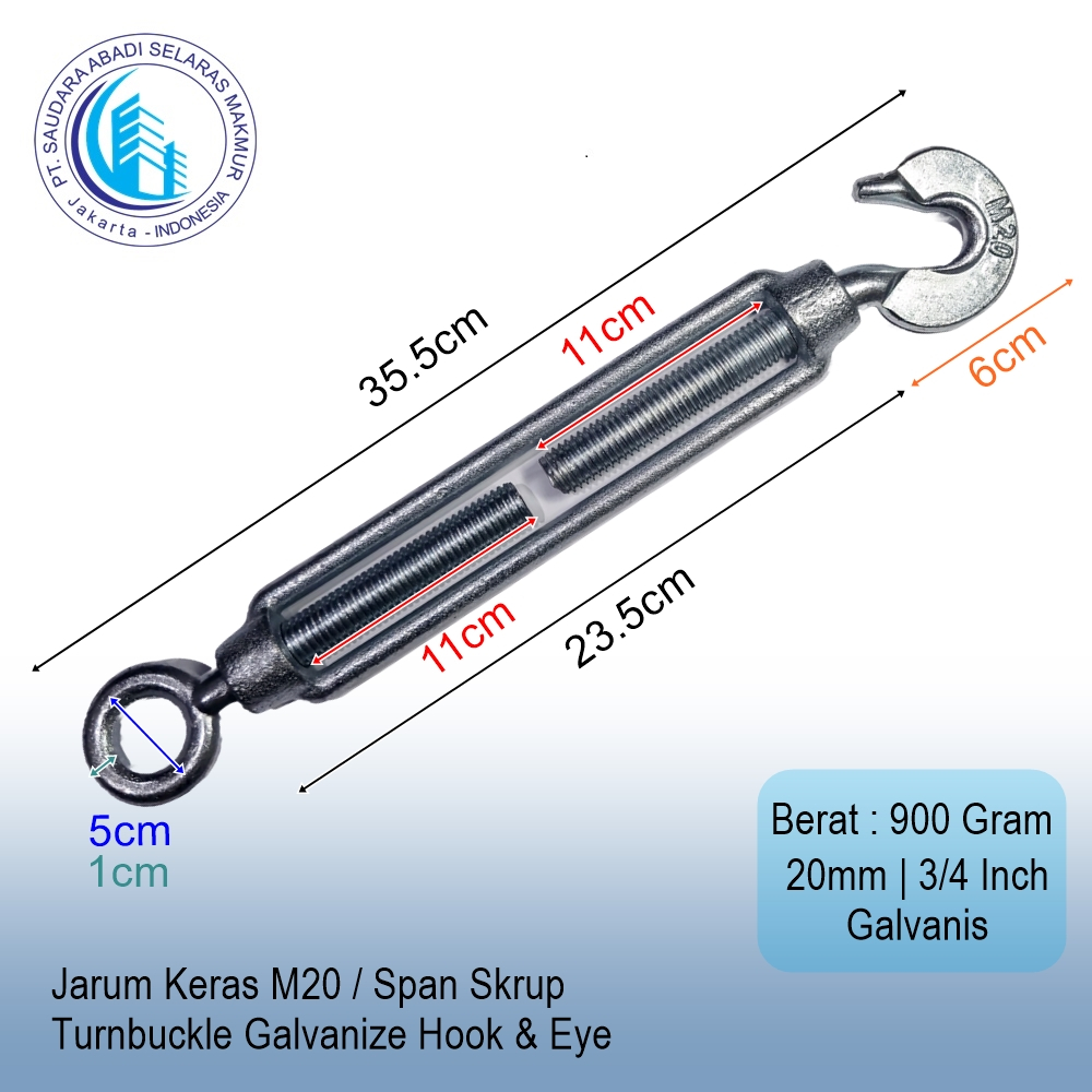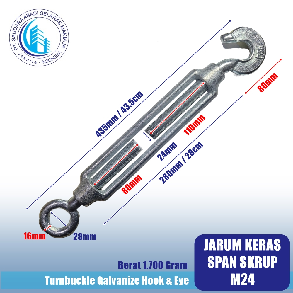 [PROMO] Jarum Keras M16 M20 M22 M24 Span Skrup Turnbuckle Galvanize Hook & Eye