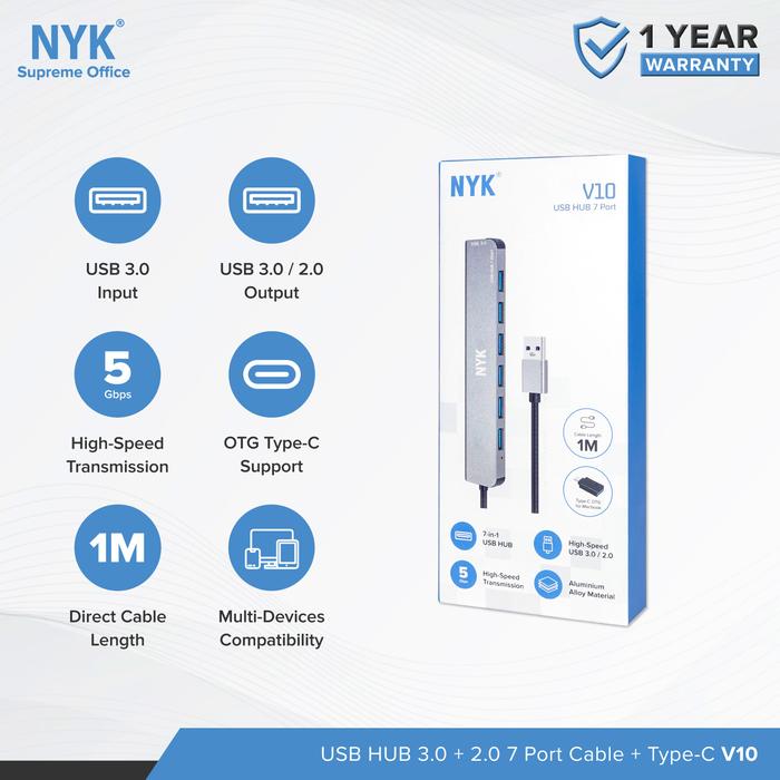 Usb Hub 3.0 Nyk 7 Port Cable 1M Otg Type C