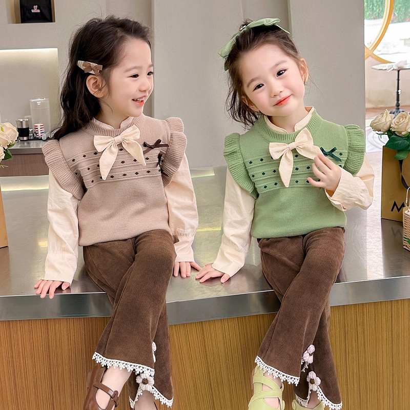 TWINKLE Setelan Baju Anak Perempuan Lengan Panjang Bahan Rajut Motif Pita Korean Style Usia 1-4 THN
