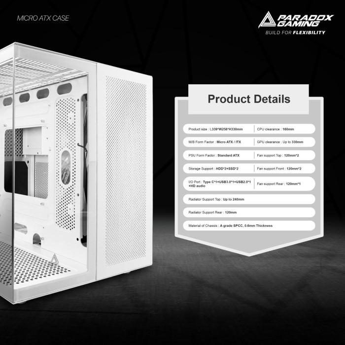 PARADOX GAMING RENGGANIS BALCK / WHITE DUAL CHAMBER FREE 1 FAN | CASING PC M-ATX | CASE CPU GAMING - BLACK