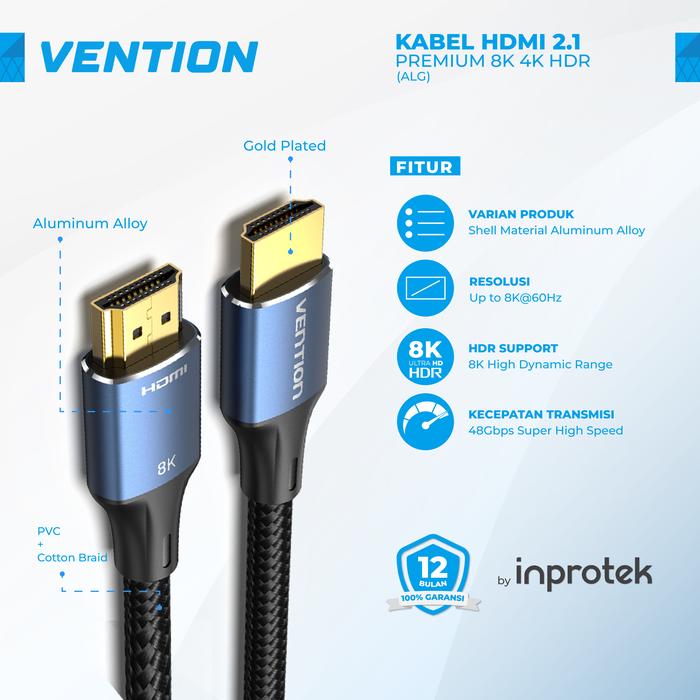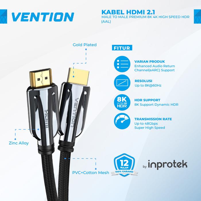 Vention Kabel Hdmi 2.1 Male To Male Premium 8K 4K High Speed Hdr - Aal, 1 Meter