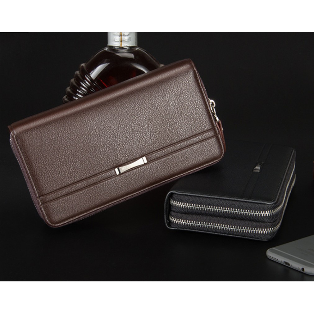 Dompet Pria Kulit PU Panjang Pria Import Dual Zipper Plus Clutch