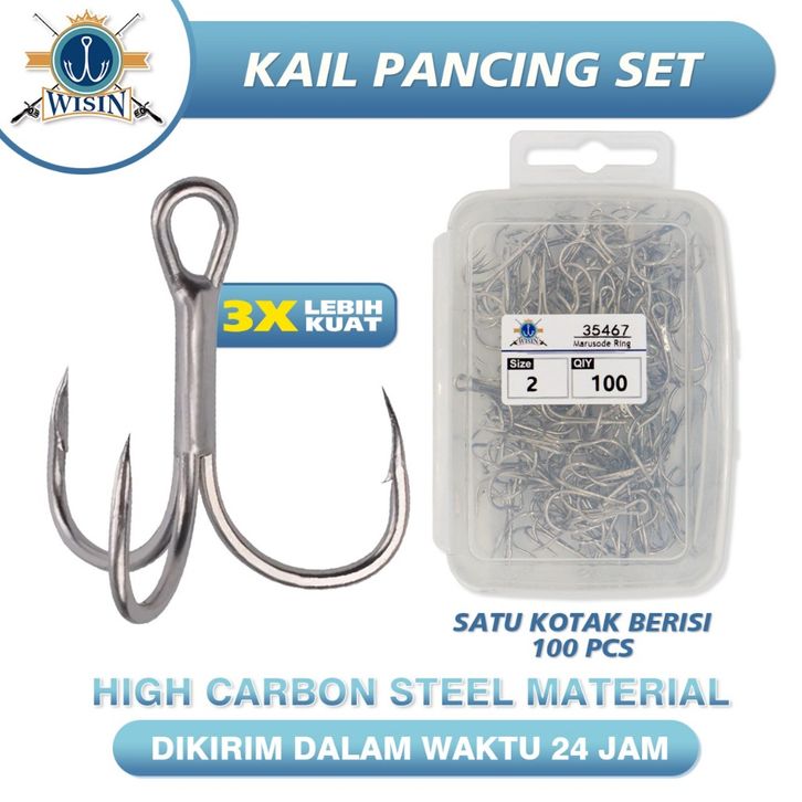 Promo WISIN Hook Kail Pancing Treble Zeus GT Warna Silver 100pcs/Kotak,50cs/Kotak berkualitas original