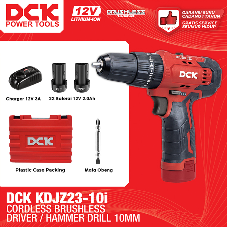 DCK KDJZ23-10i Cordless Brushless Driver / Hammer Drill 10mm Mesin Bor Baterai Full Set 2 Batre