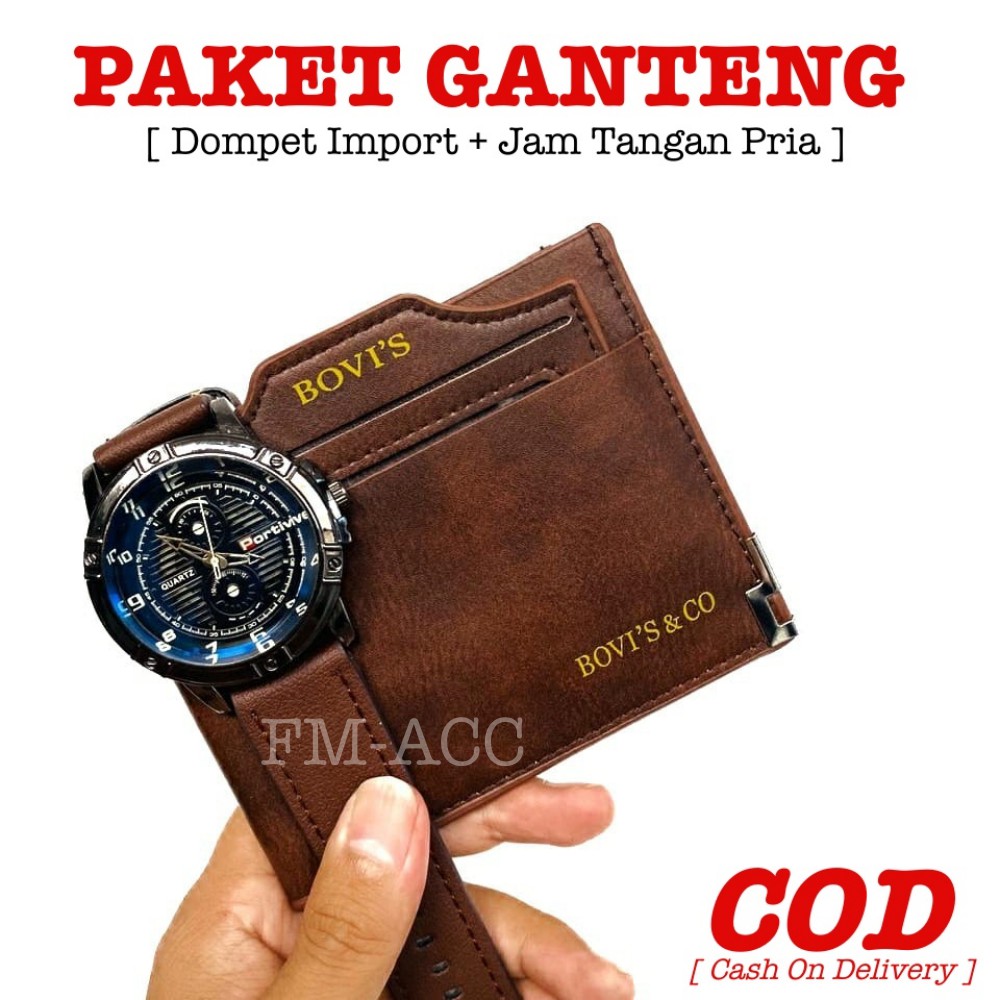 [ PAKET KEREN ] Dompet Kulit Pria IMPORT Murah & Terbaru + GRATIS Jam Tangan Pria