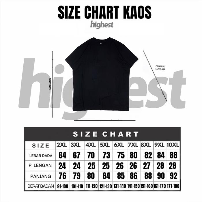 KAOS JUMBO BIGSIZE UKURAN 2XL, 3XL, 4XL, 5XL, 6XL, 7XL, 8XL, 9XL, 10XL HIGHEST | KAOS ALL VARIAN 1 COMBED PRIA - HG185,
