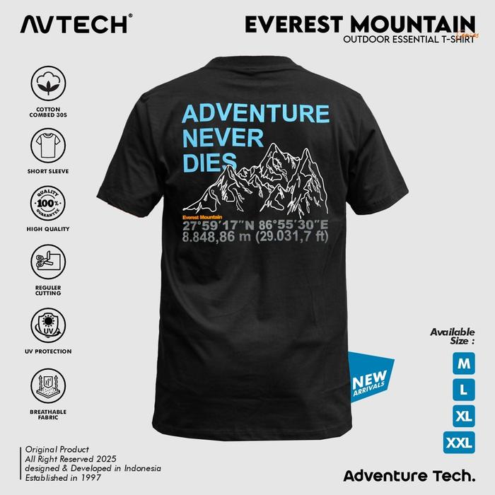 AVTECH - T-SHIRT KAOS LENGAN PENDEK PRIA WANITA OUTDOOR CASUAL COTTON COMBED - EVEREST MOUNTAIN - HITAM, M