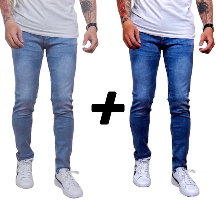 PROMO ( PAKET HEMAT 2PCS) CELANA JEANS PANJANG PRIA SLIMFIT DEWASA MELAR - BIRU TUA + HITAM, 27
