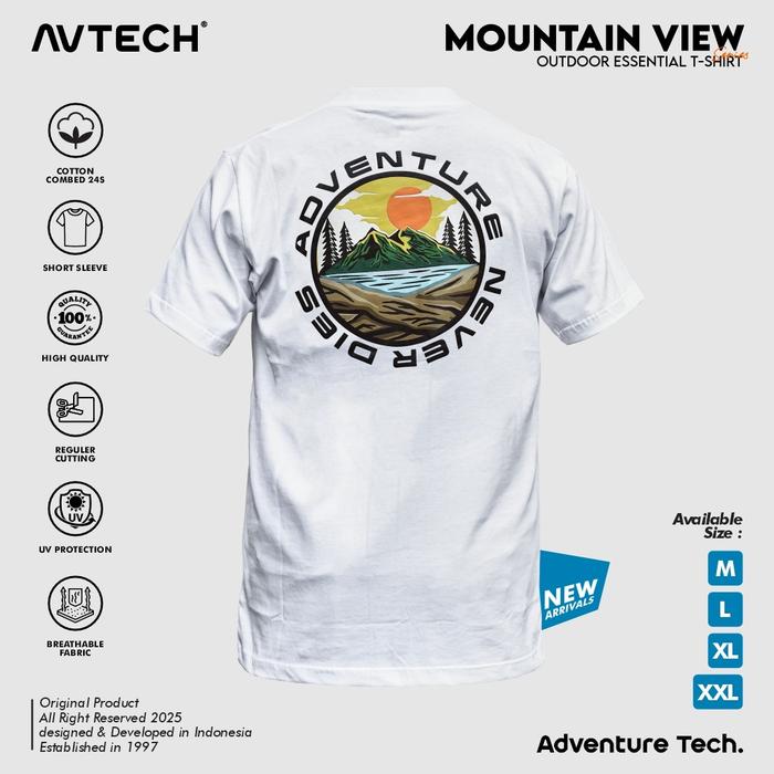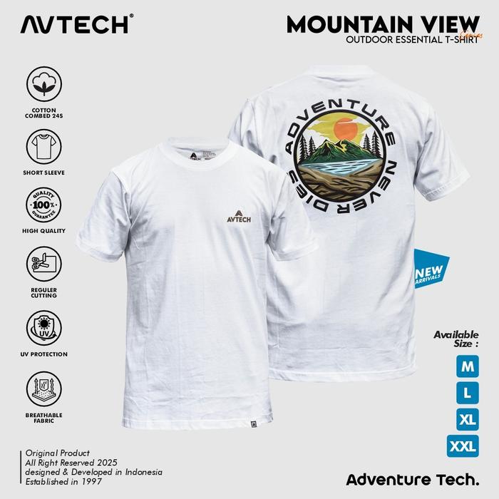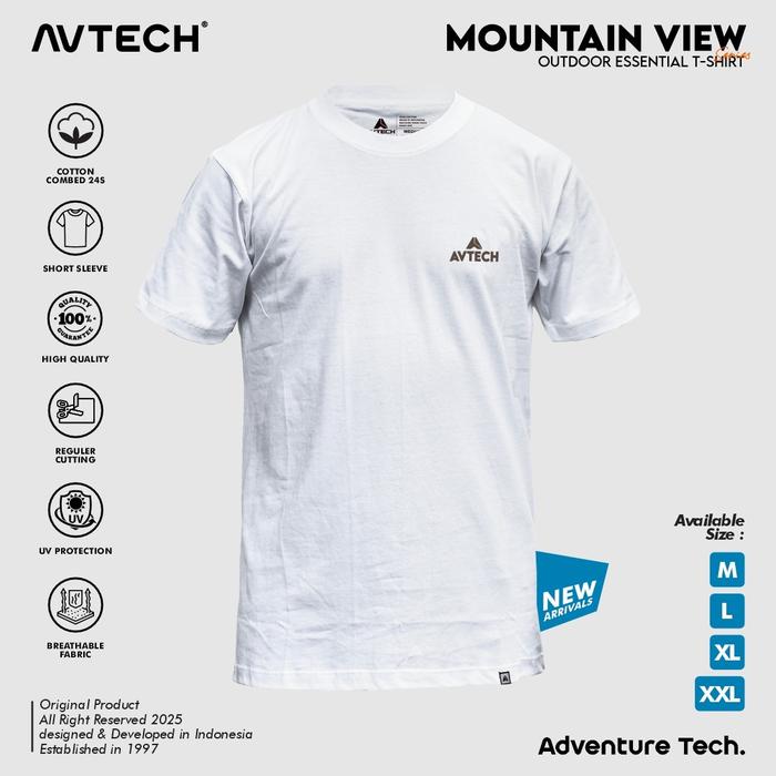 AVTECH - T-SHIRT KAOS PRIA WANITA LENGAN PENDEK OUTDOOR CASUAL HARIAN COTTON COMBED - MOUNTAIN VIEW - PUTIH, M