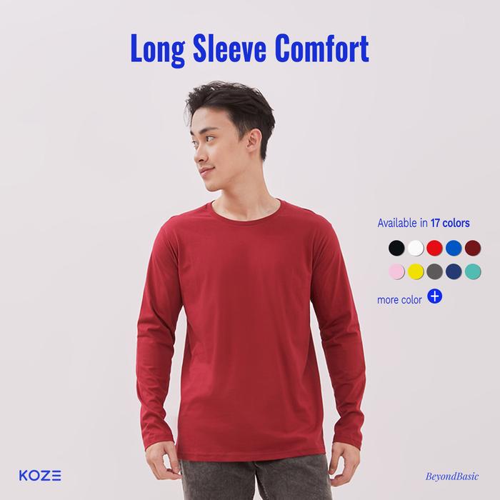 KOZE - LONG SLEEVE PREMIUM COMFORT PREMIUM COMBED 30S T-SHIRT 1 KAOS POLOS BAJU PRIA KATUN PANJANG - BLACK, XS