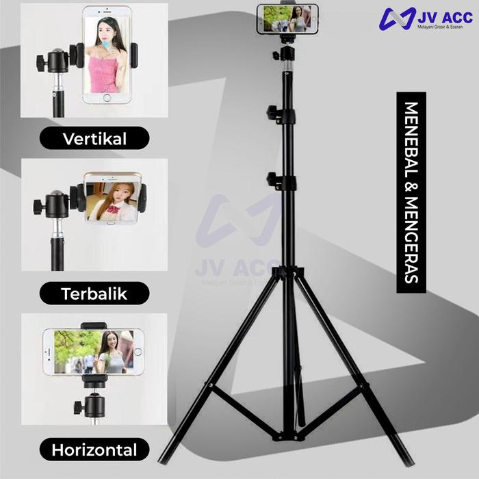 GRATIS ONGKIR ! TRIPOD TRIPOT 2.1M PHONE STAND HOLDER HP / ACTION CAMERA LOGAM ORI