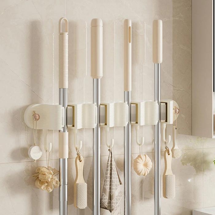 BEST PRODUK ! GANTUNGAN SAPU DAN PEL GANTUNGAN 5 SLOT MULTIFUNGSI GANTUNGAN DINDING TERLARIS -WD-1 - PUTIH ORI
