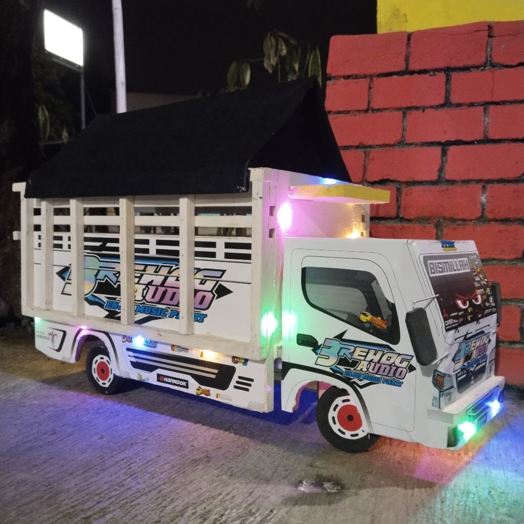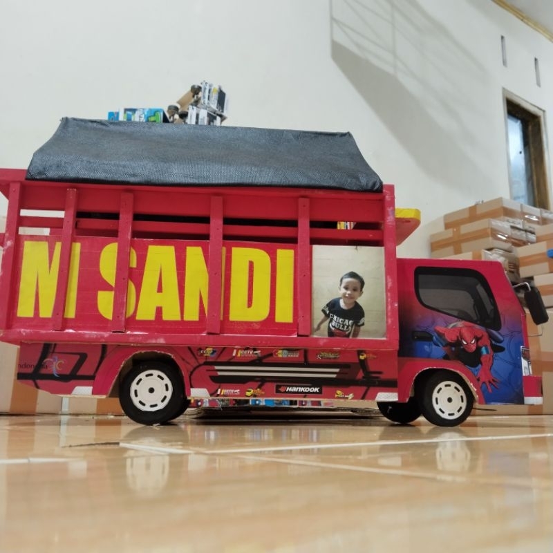 miniatur truk oleng kayu motif sepiderman ukuran 60 free costum foto&nama truk oleng