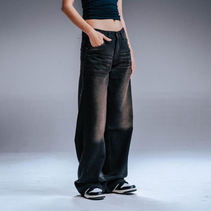 PLUVIOPHILE - CELANA JEANS WIDE LEG GOMBRONG WISKER THINK RETRO - THINK RETRO, S / 28