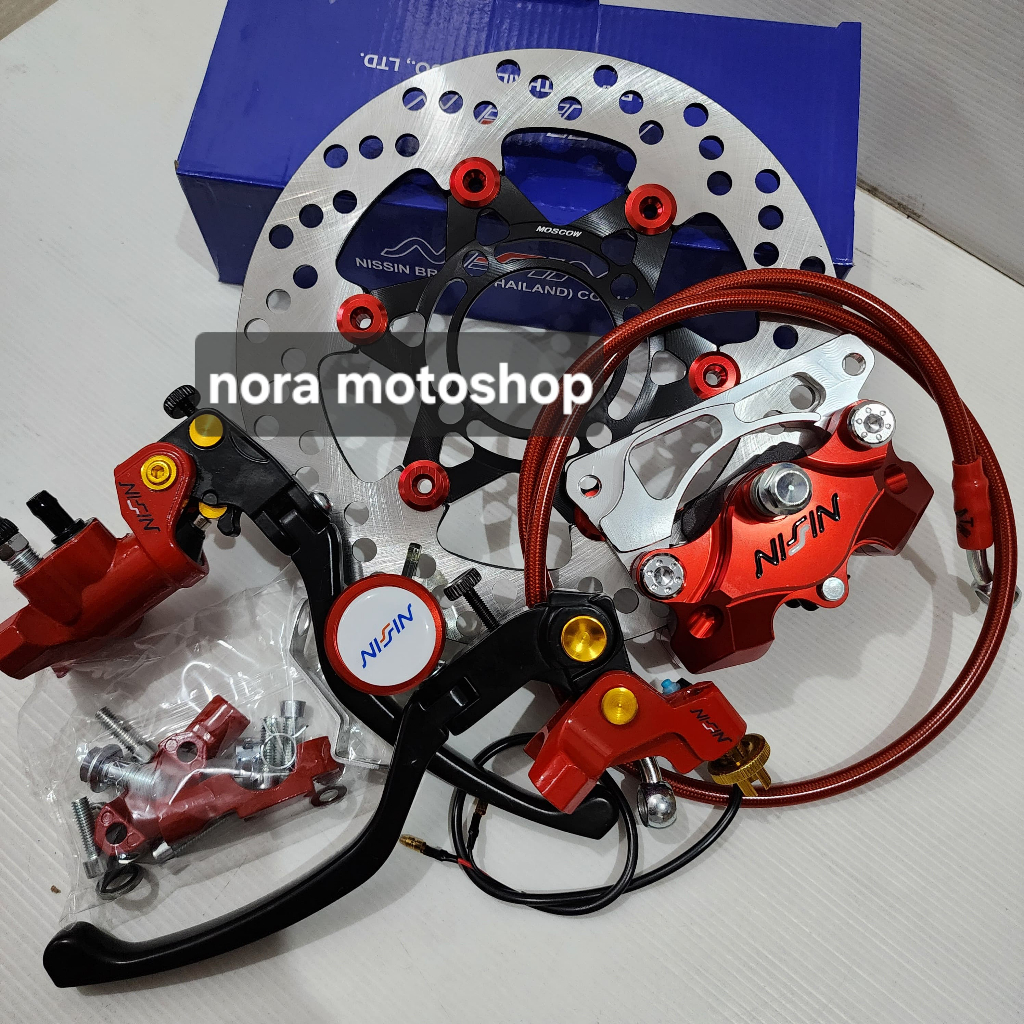Paket breket kaliper NS 2 piston plus master rem set kiri kanan dan piringan 220mm kaliper vario beat scoopy mio fino mi