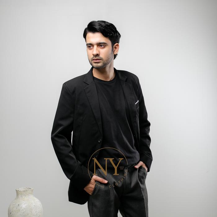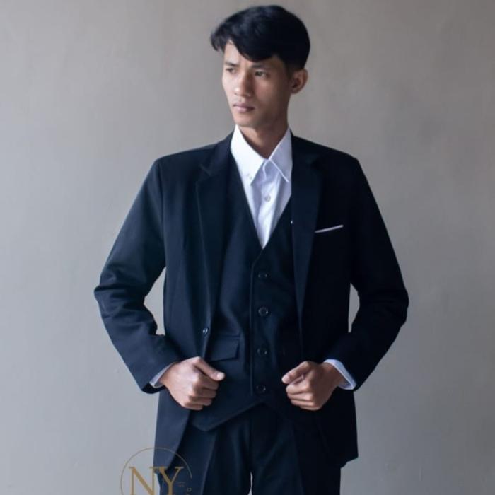 BLAZER PRIA JAS PRIA JAS FORMAL PRIA SLIMFIT DEWASA CASUAL KAIN PANJANG SEMI TEBAL HITAM WISUDA - HITAM, XS