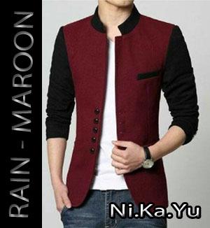 BLAZER RAIN-MAROON - JAS SEMI FORMAL PRIA SLIMFIT KOREA PESTA CASUAL SANTAI GAUL - S