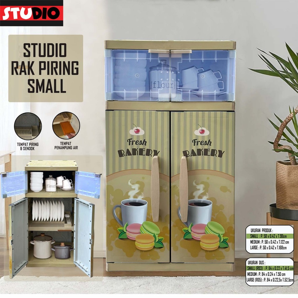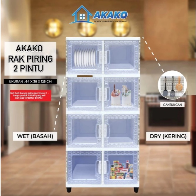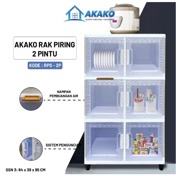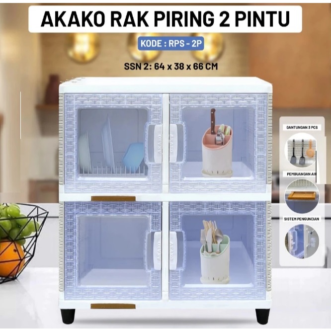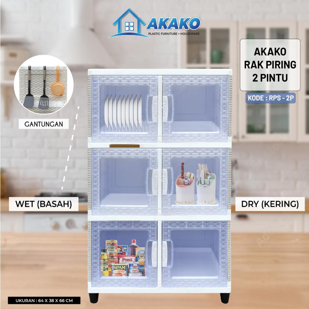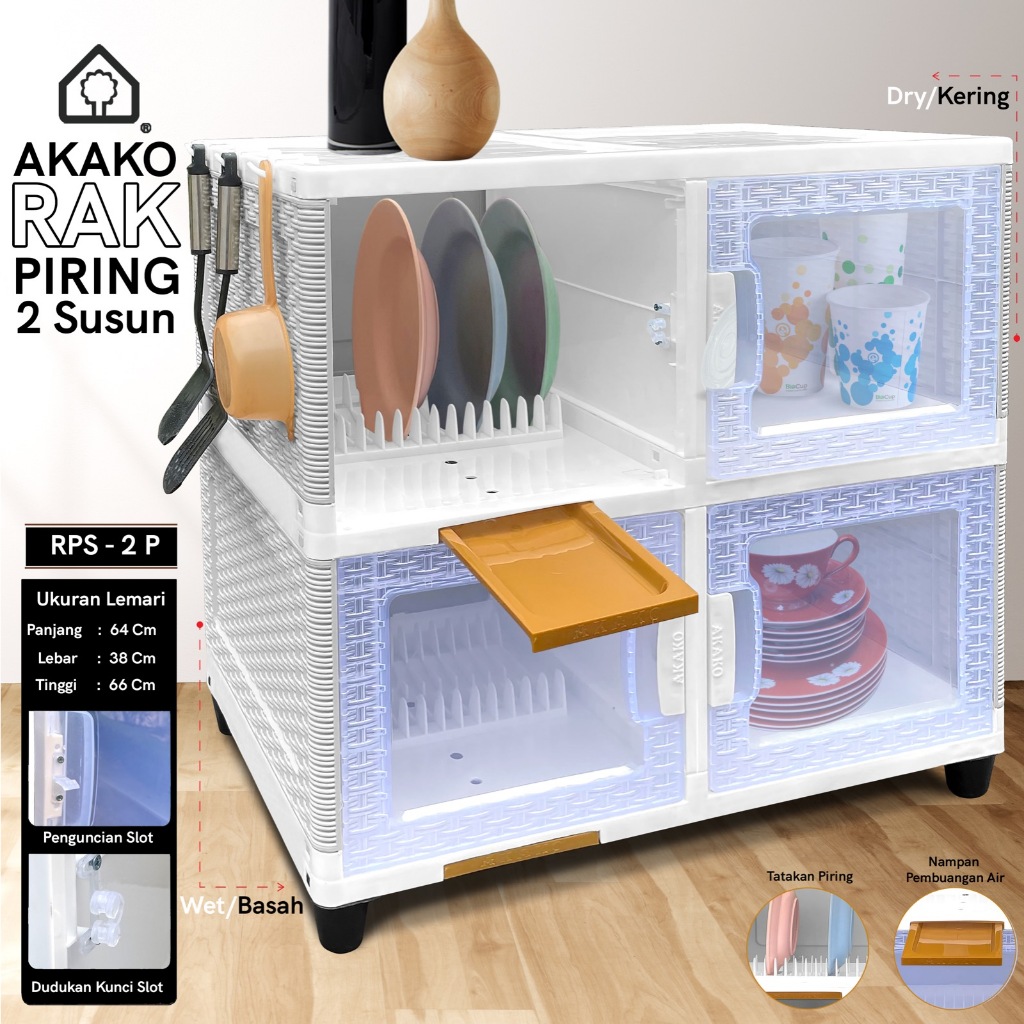 AKAKO Rak Piring Plastik Minimalis Modern Lamari Dapur Tertutup Serbaguna 2 3 4 Susun Pintu Wastafel Kaca Keramik Naiba