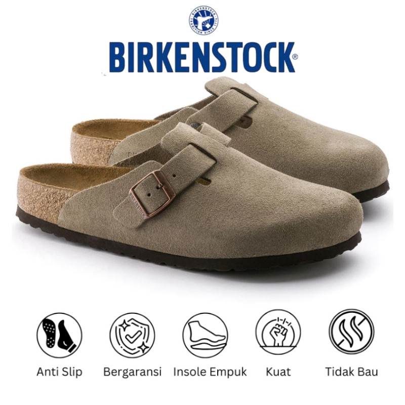 Birkenstock Boston Suede Leather Soft Footbed Clogs Taupe Original Sandal Slop