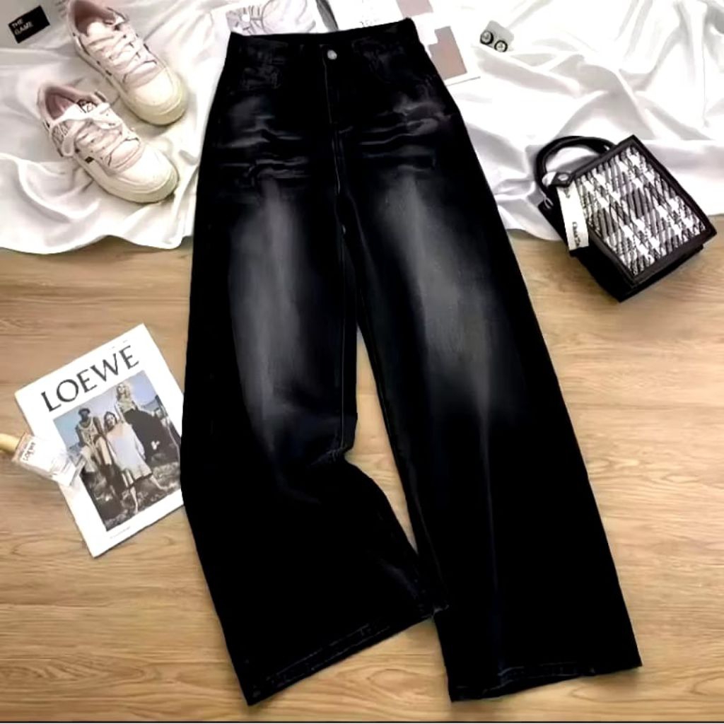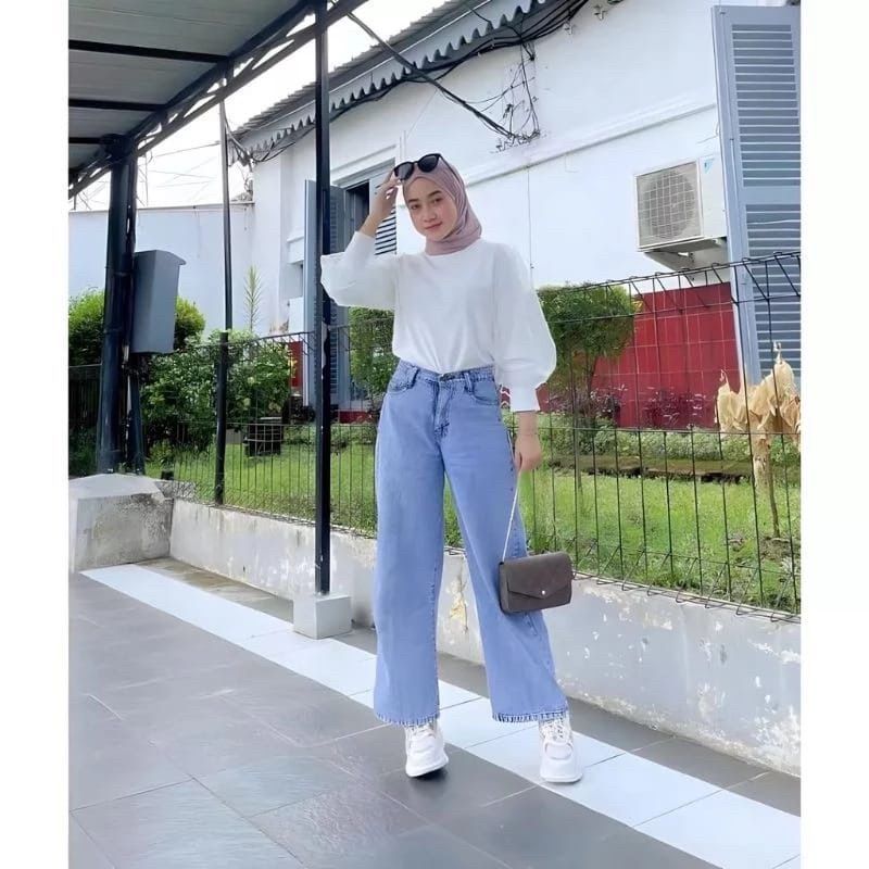 Celana Jeans Wanita Kulot Bawahan High Waist
