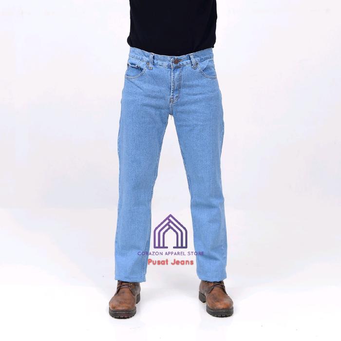 CELANA JEANS PANJANG PRIA STANDAR REGULER STRAIGHT MODEL LOOSE KOREAN STYLE BASIC DENIM SIZE 28-38 DEWASA - BLACK, 33