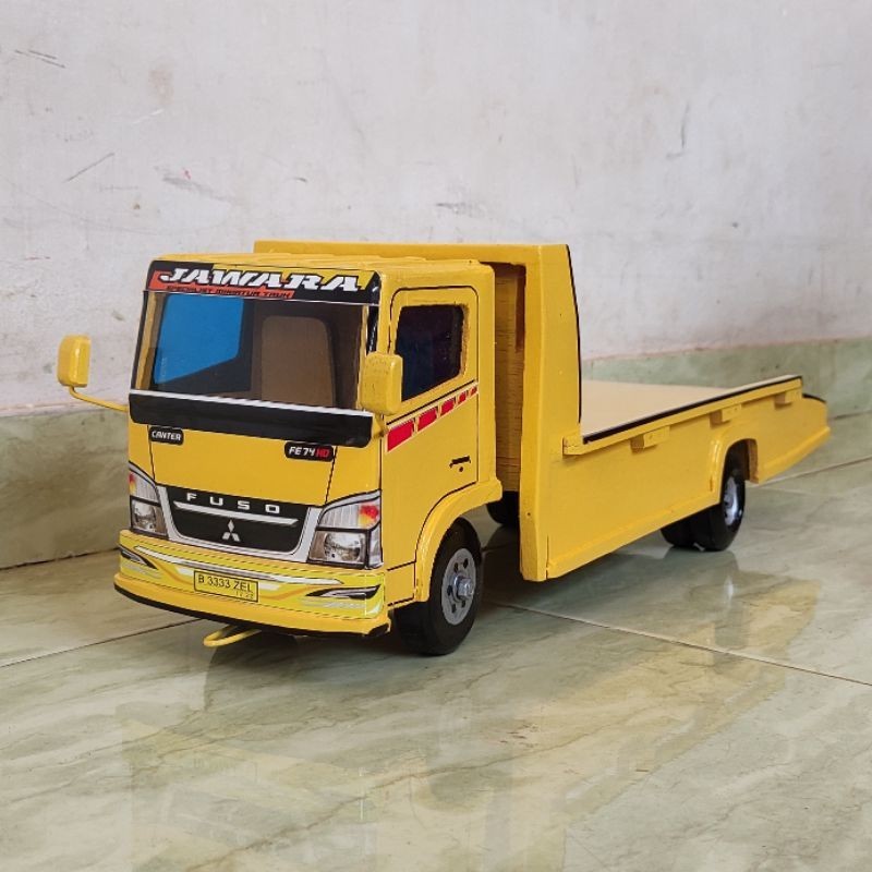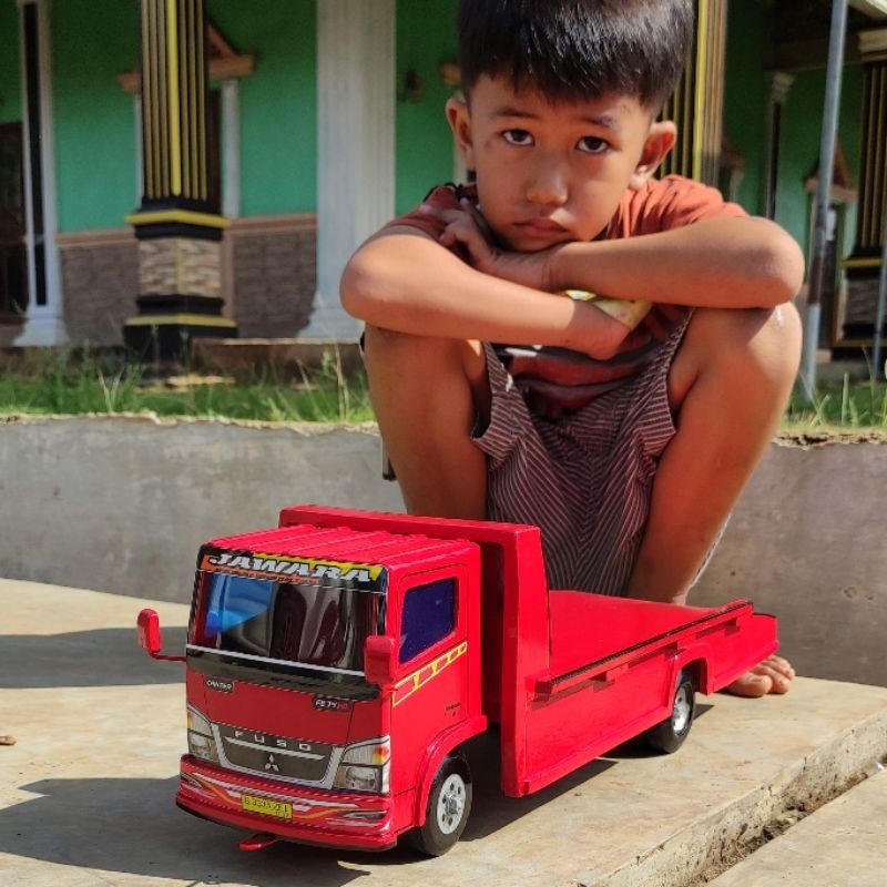 Real pict Miniatur mobil mainan anak laki truk oleng towing kayu P 50cm truck losbak truk muat mobil