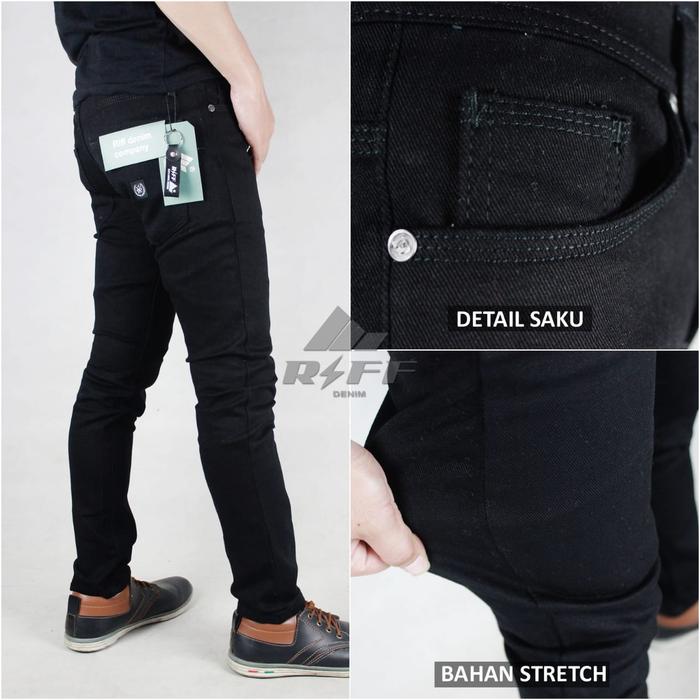 CELANA JEANS PRIA SLIM FIT BLACK WASH DENIM STRETCH PANJANG PREMIUM - HITAM, 27