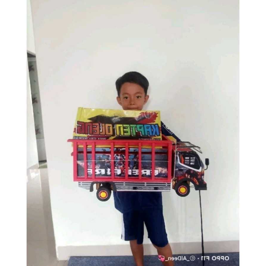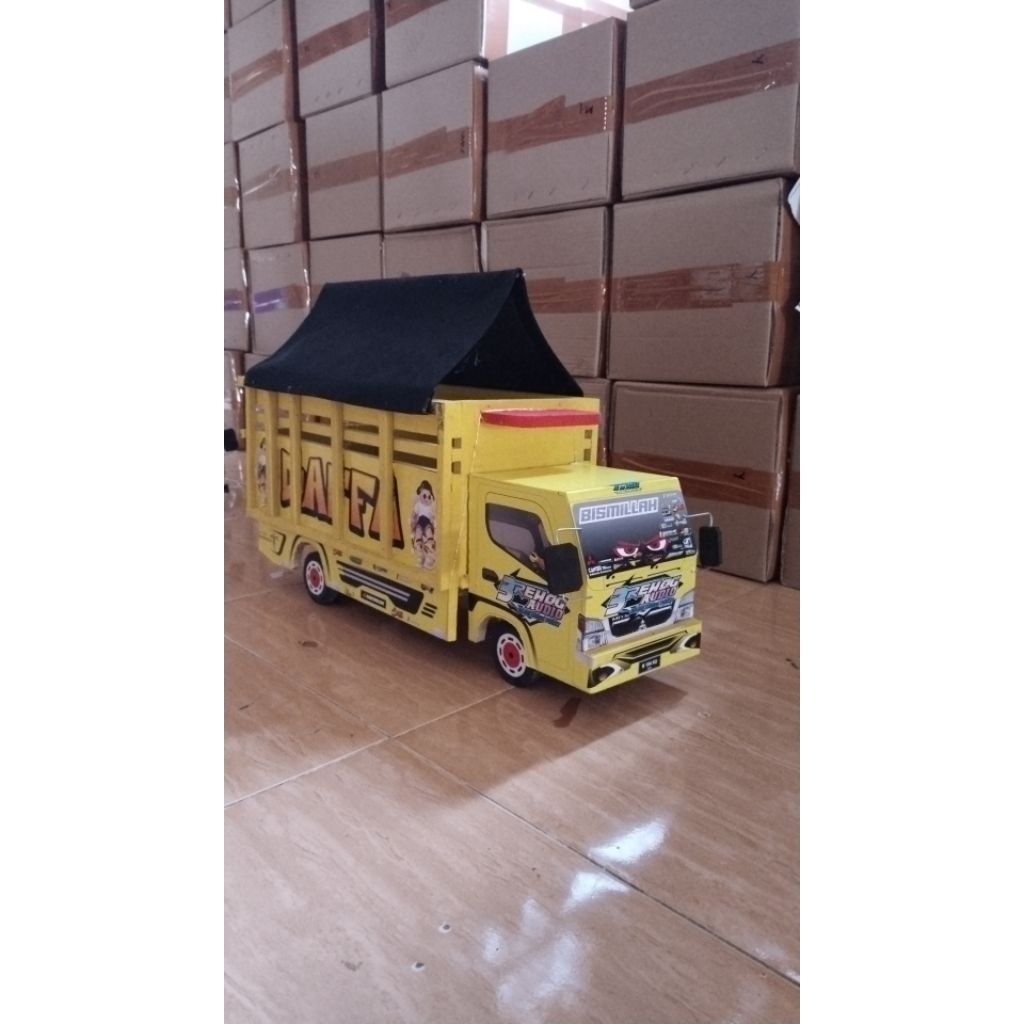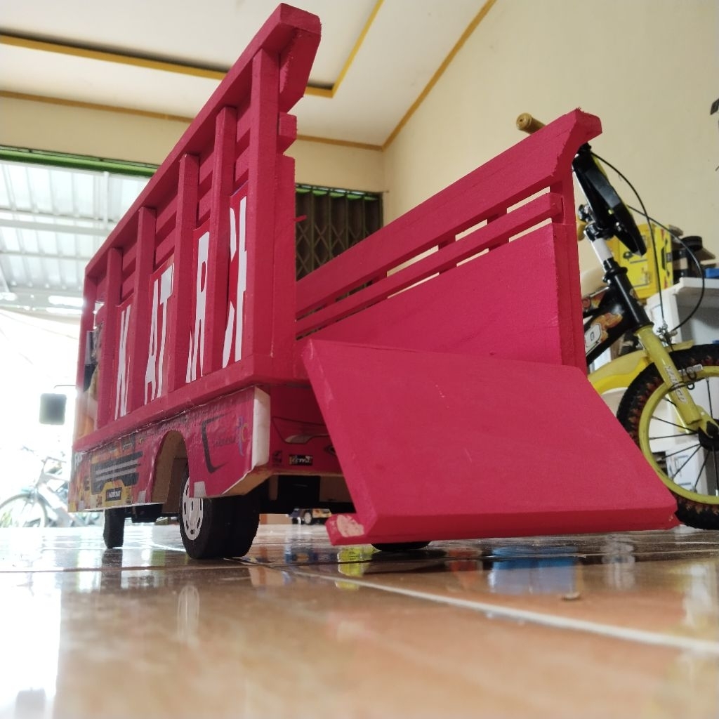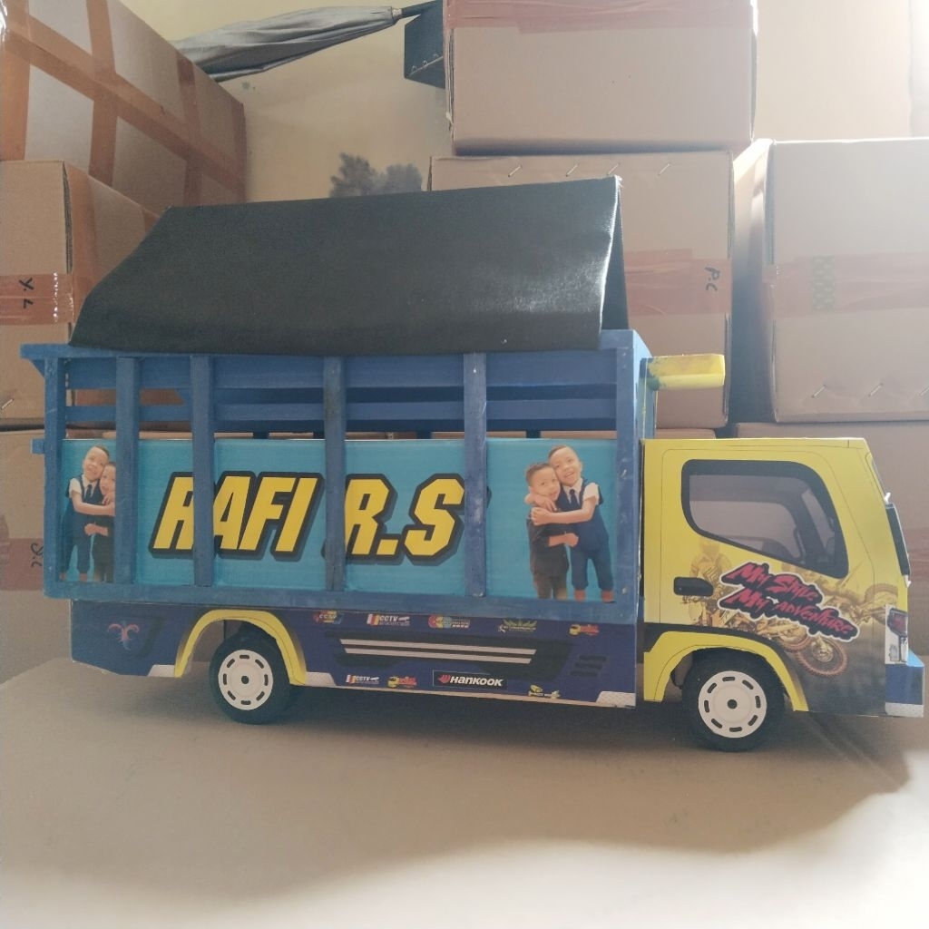 Castom foto dan Nama Miniatur Truk Oleng kayu besar 60cm Full lampu terpal