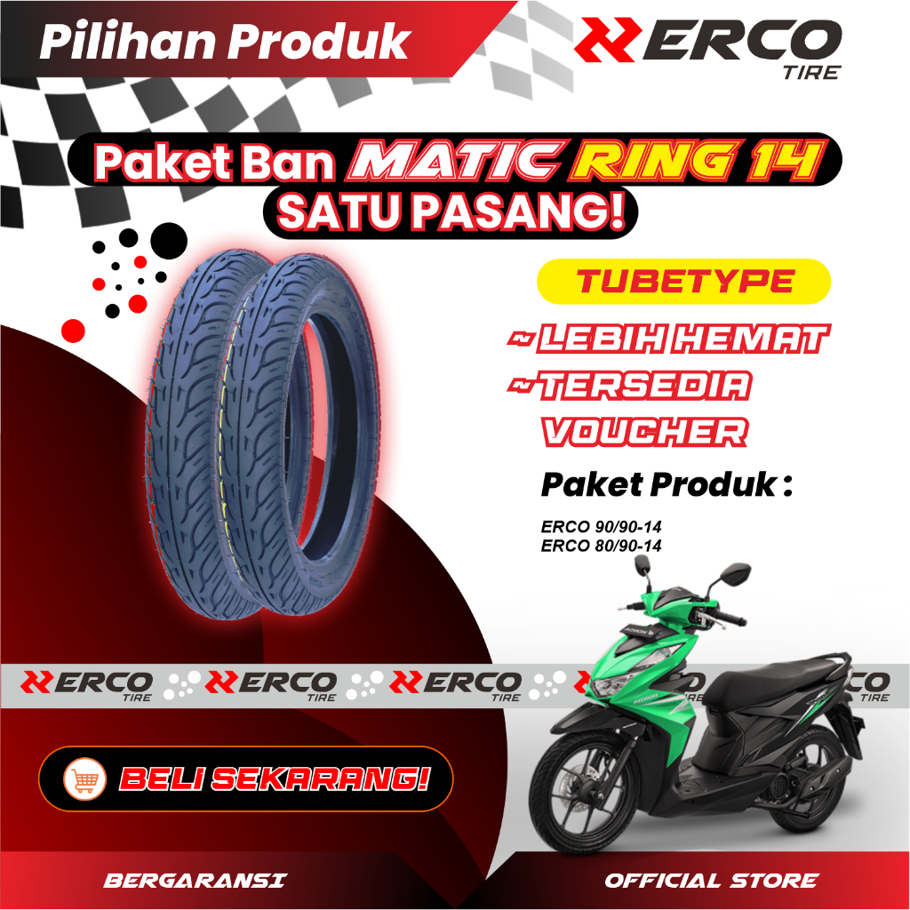 Ban Motor ERCO Tubeless NonTubeless Satu Set Ban Motor Matic 90/90-14 dan 80/90-14