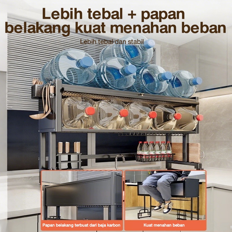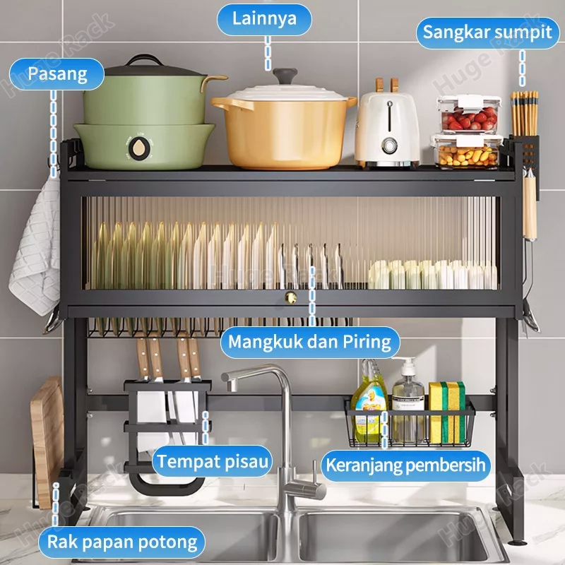 Rak Piring Wastafel Dapur Stainless Steel Multi fungsi Dengan Penutup Rak Cuci keramik alumunium 3 pintu besi dinding