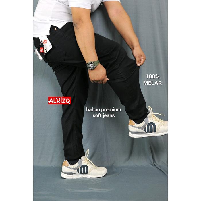CELANA JEANS PRIA SLIMFIT JUMBO STRETCH/MELAR/NGARET - HITAM SOFT JEANS, 28