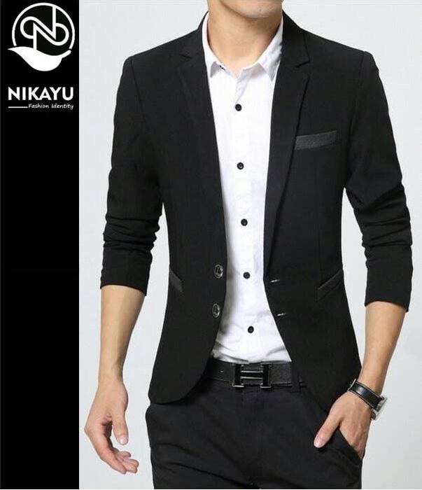 STYLE BLACK - JAS BLAZER PRIA COWOK SLIMFIT BODYFIT CASUAL HITAM BARU - HITAM, S