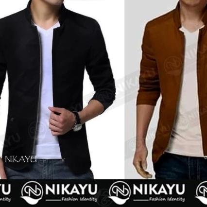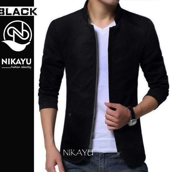 BLAZER ZIPPER - BAJU PAKAIAN SEMI JAKET PRIA RESLETING HITAM KOREA - HITAM, S