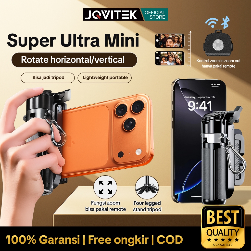 Jovitek 3 In 1 Extendable Grip Tripod TR15 Mini Selfie Stick Rotasi multi-sudut Remote Control Tripod USB Bluetooth Dan