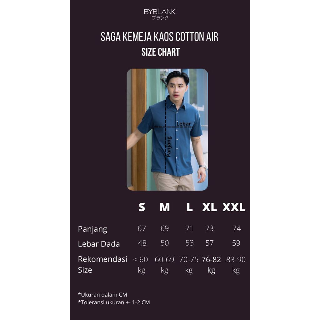 BYBLANK Saga Kemeja Kaos Cotton Air - Kemeja Premium Lengan Pendek Bahan Cotton Air