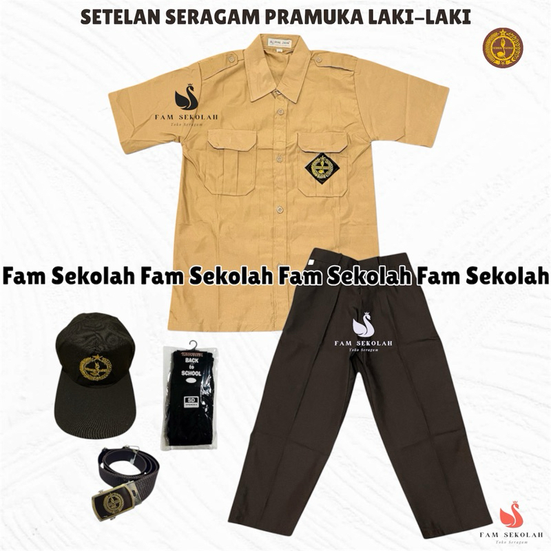 SETELAN SUPER LENGKAP SERAGAM PRAMUKA SEKOLAH SD LAKI-LAKI BAJU PENDEK CELANA PANJANG