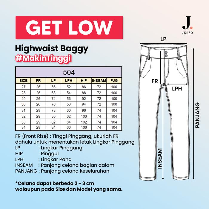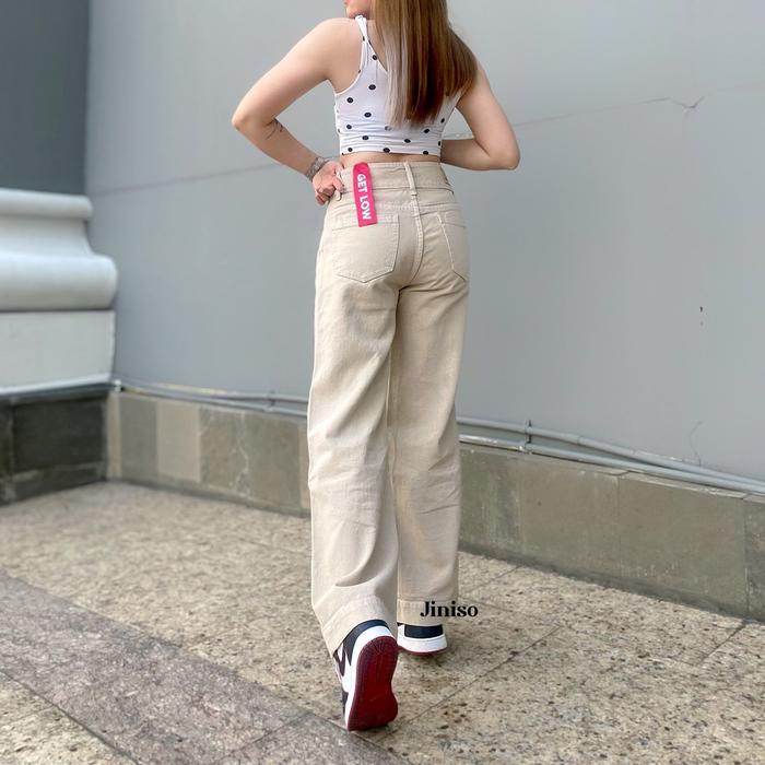 JINISO GET LOW - 504 BAGGY HIGHWAIST CELANA JEANS WANITA WARNA KHAKI - 27