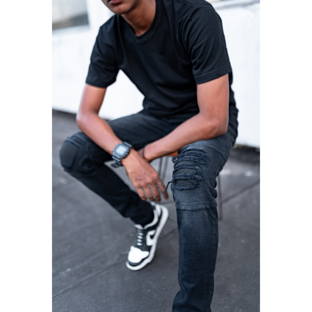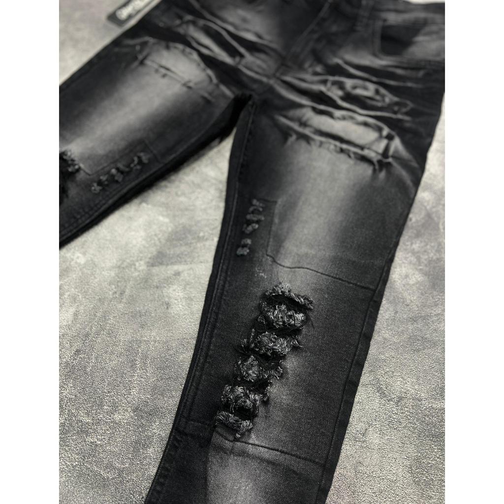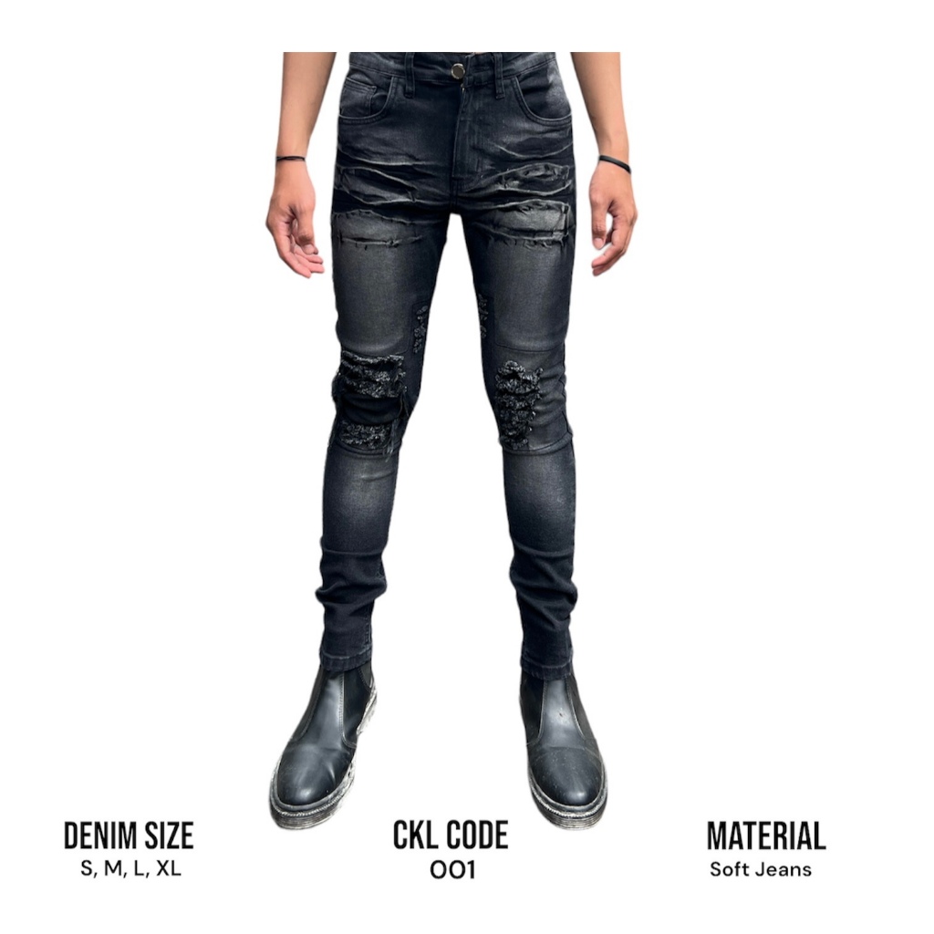 CHICKCOOL - DISTROYER BLACK - Celana Jeans Pria Skinny Stretch Ripped Tambal Denim Fit