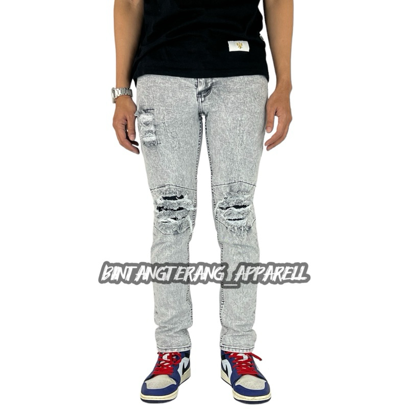 CELANA JEANS SOBEK RIPPED Lutut Abu Abu Skinny