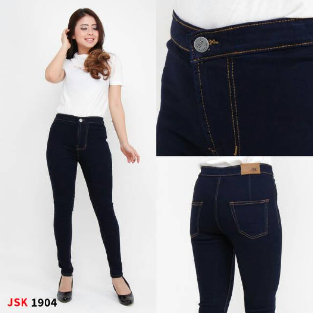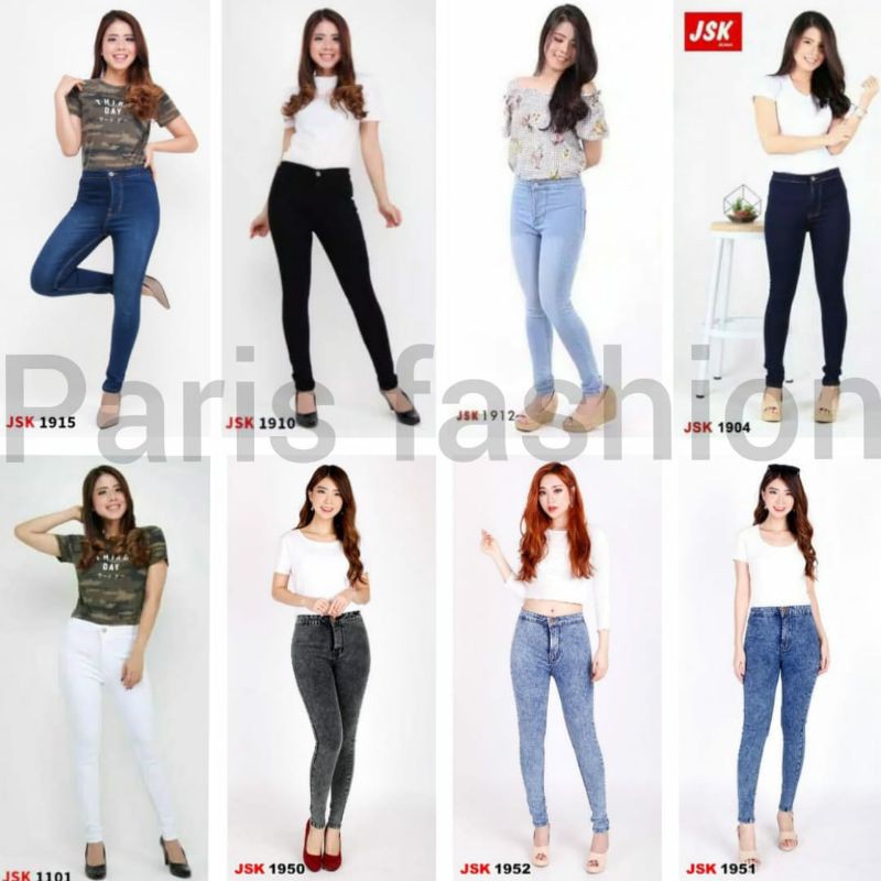 Jsk Celana Panjang Highwaist Skinny Jeans Denim Cewek Wanita 8 Warna Size 27-38