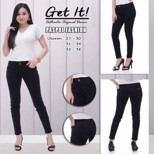 SKINNY JEANS WANITA WARNA HITAM MERK GET IT SIZE 28-38
