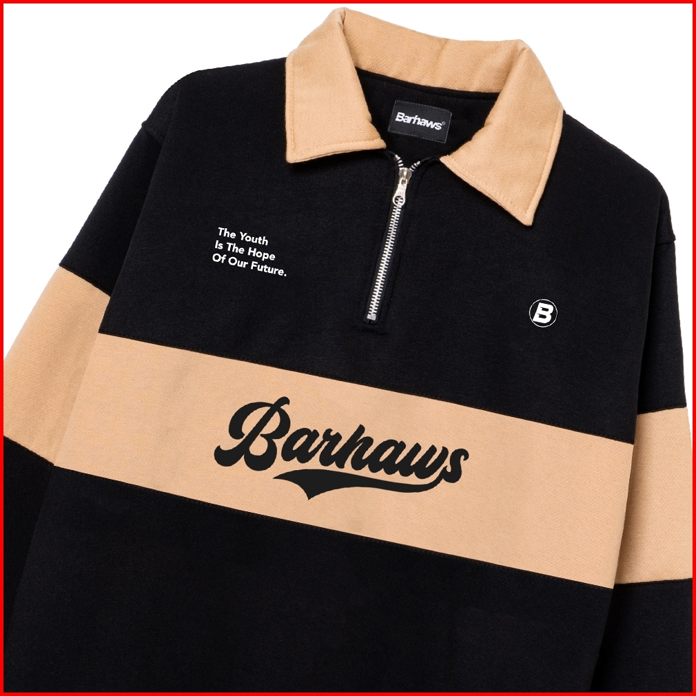 Barhaws - Sweater Half Zipper Rugby Hitam Kombinasi Coklat