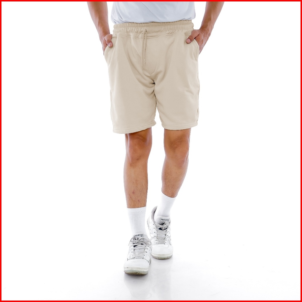 Barhaws - Celana Pendek Pria Boardshort Polos Tebal Beige
