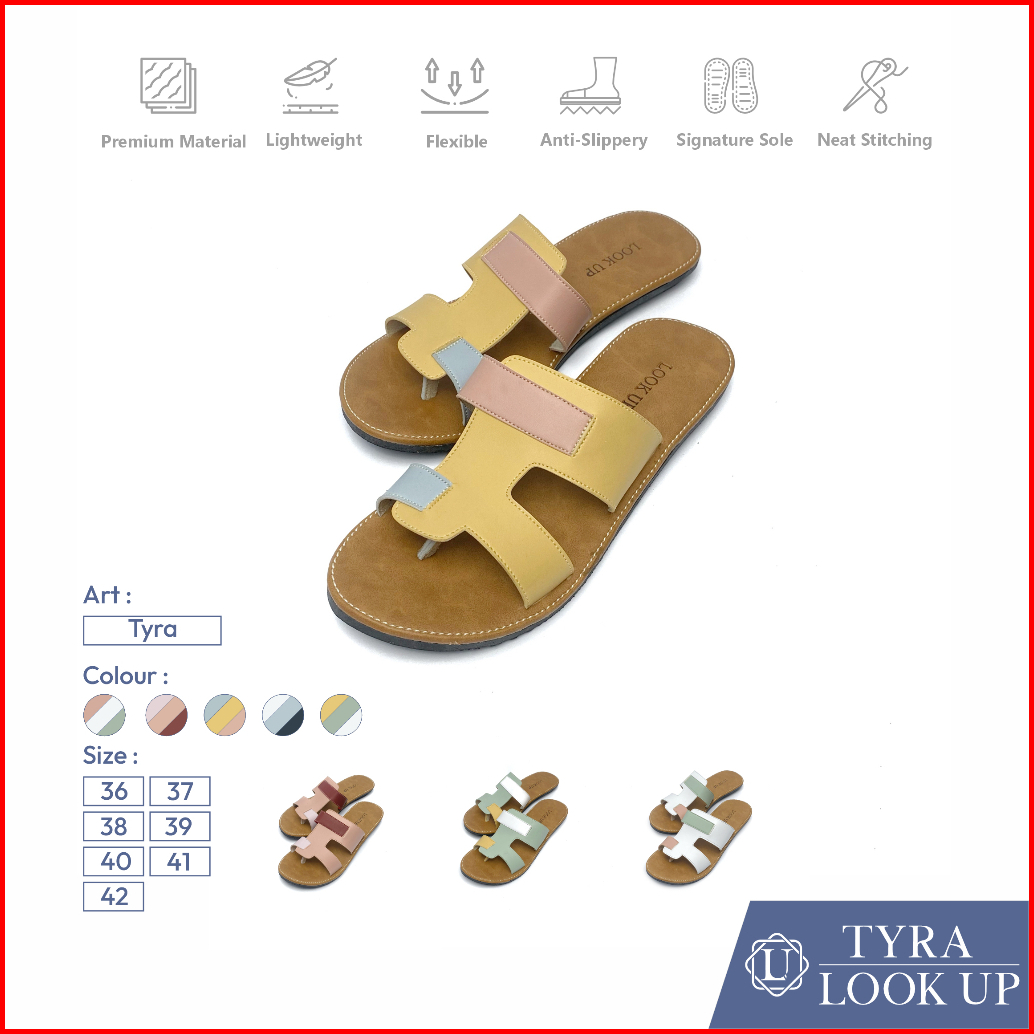 Tyra Lookupshoes Sandal Wanita Kokop Slop Jepit Empuk Kombinasi Korean Stlye Teplek Anti Licin
